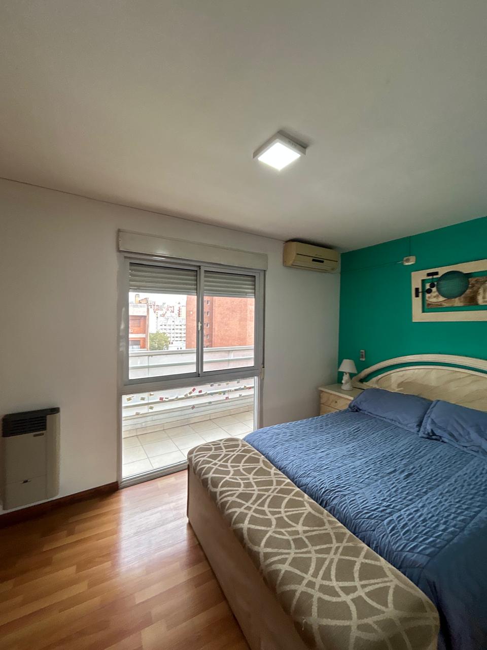 Imponente departamento amoblado en Bv. Illia, casi Bv. Chacabuco. 2 dormitorios, 2 baños, living comedor, cocina separada y balcón con asador. Muy luminoso y con excelente vista. Edificio de categoría con gimnasio, seguridad, SUM y pileta.